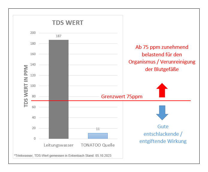 Ein TDS-Wert von über 650 ppm kann sehr belastend für den Organismus sein und zu einer starken Verunreinigung der Blutgefäße führen.